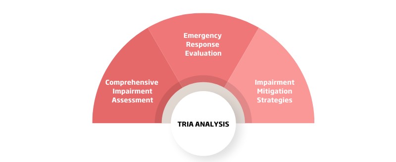 Temporary Refuge Impairment Analysis (TRIA) is a critical component of technical risk management, conducted to assess the effectiveness of temporary refuges in supporting escape, muster, evacuation, and rescue during major accident hazards (MAH). This analysis identifies potential mechanisms that could impair the functionality of temporary refuges, including,